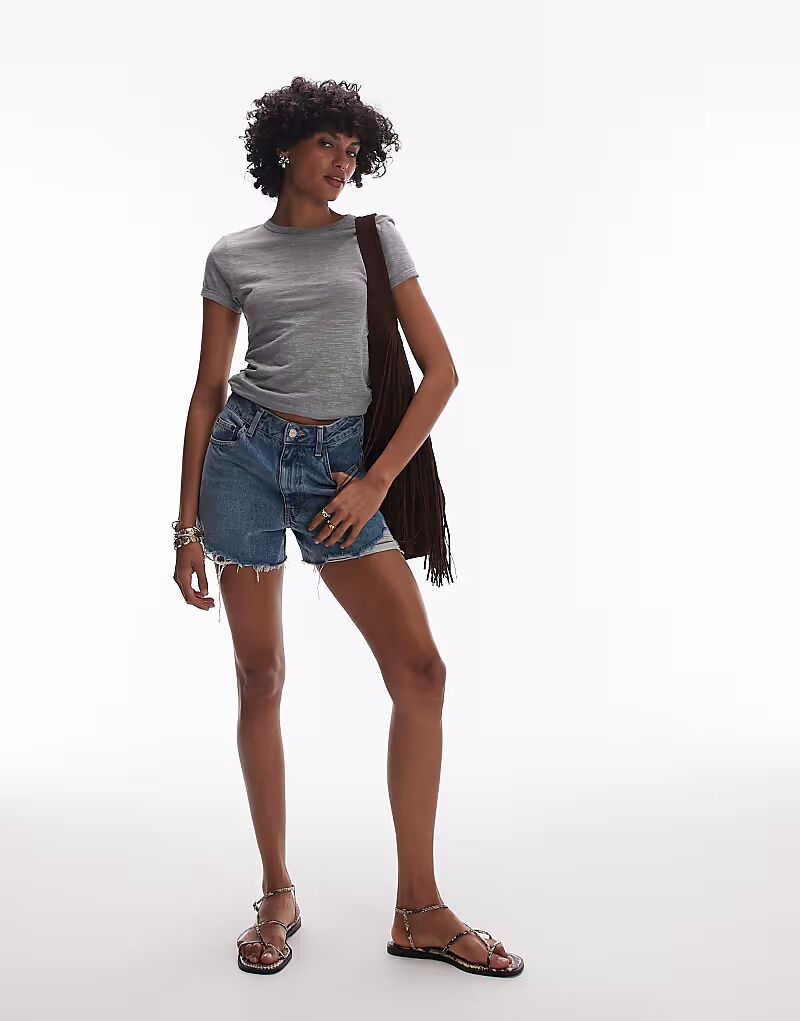 Футболка Topshop из льна серого цвета