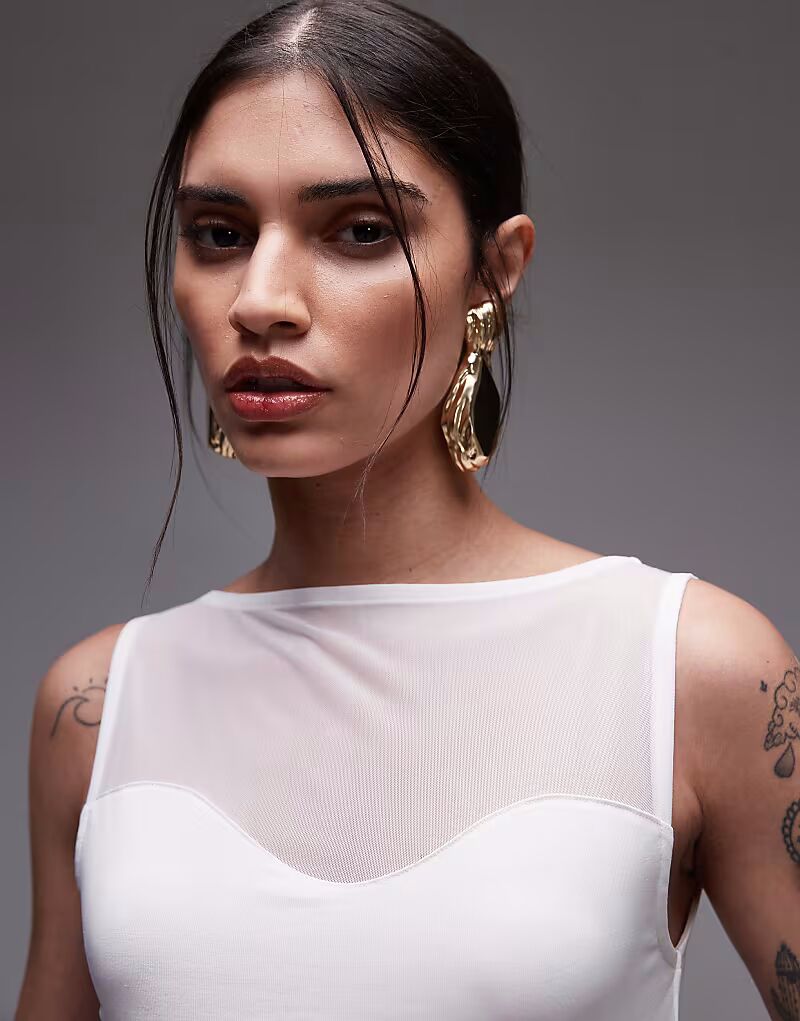Боди из смеси сетчатой ​​ткани ASOS DESIGN цвета экрю