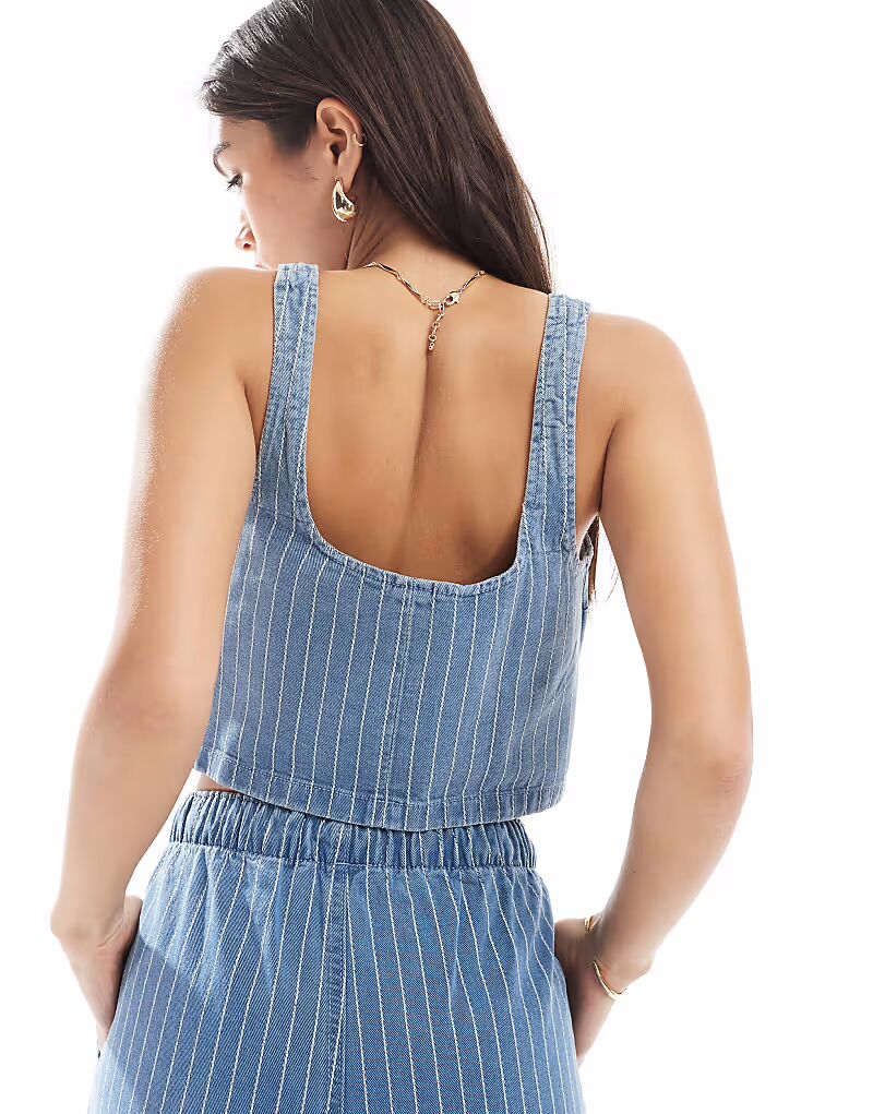 Джинсовый топ ASOS DESIGN с вышитой полосой в синем цвете