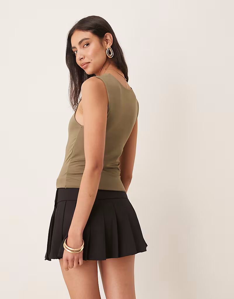 Двухслойный топ ASOS DESIGN с круглым вырезом цвета хаки