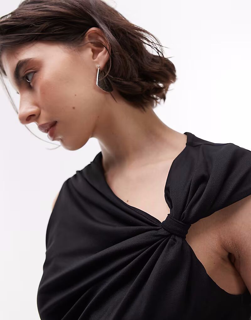 Топ Topshop с узлом на плече черного цвета