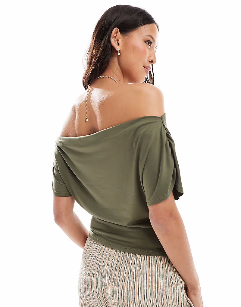 Топ Miss Selfridge с открытыми плечами цвета хаки