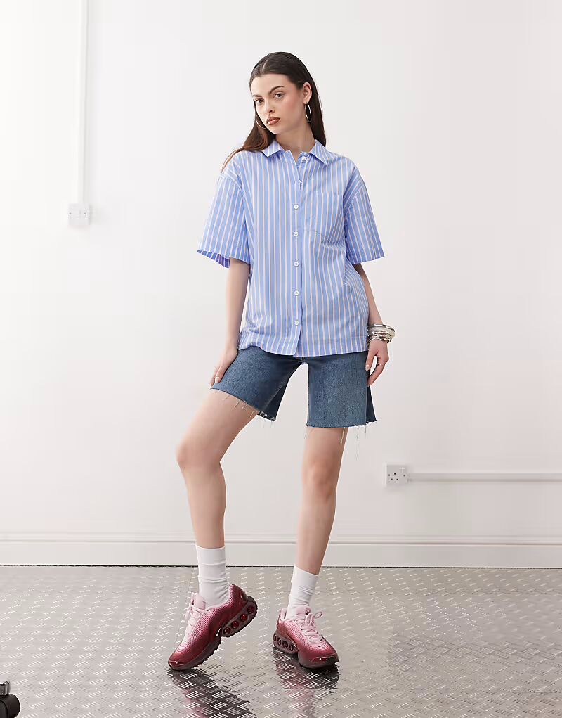 Рубашка Monki oversize с короткими рукавами в синюю полоску