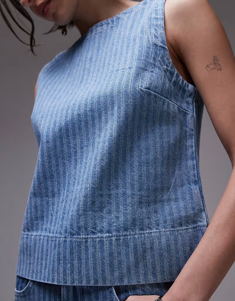 Топ Topshop denim shell top in bleach stripe 5 955₽