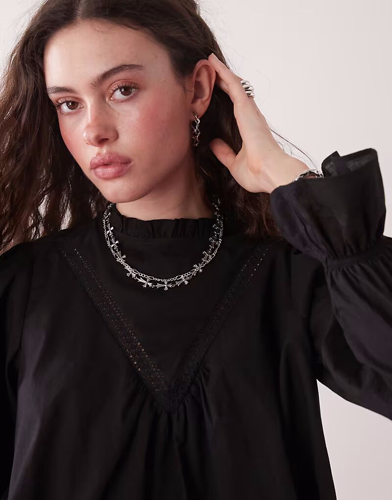 Топ Reclaimed Vintage smock top with flare sleeve and lace inserts in black 3 795₽