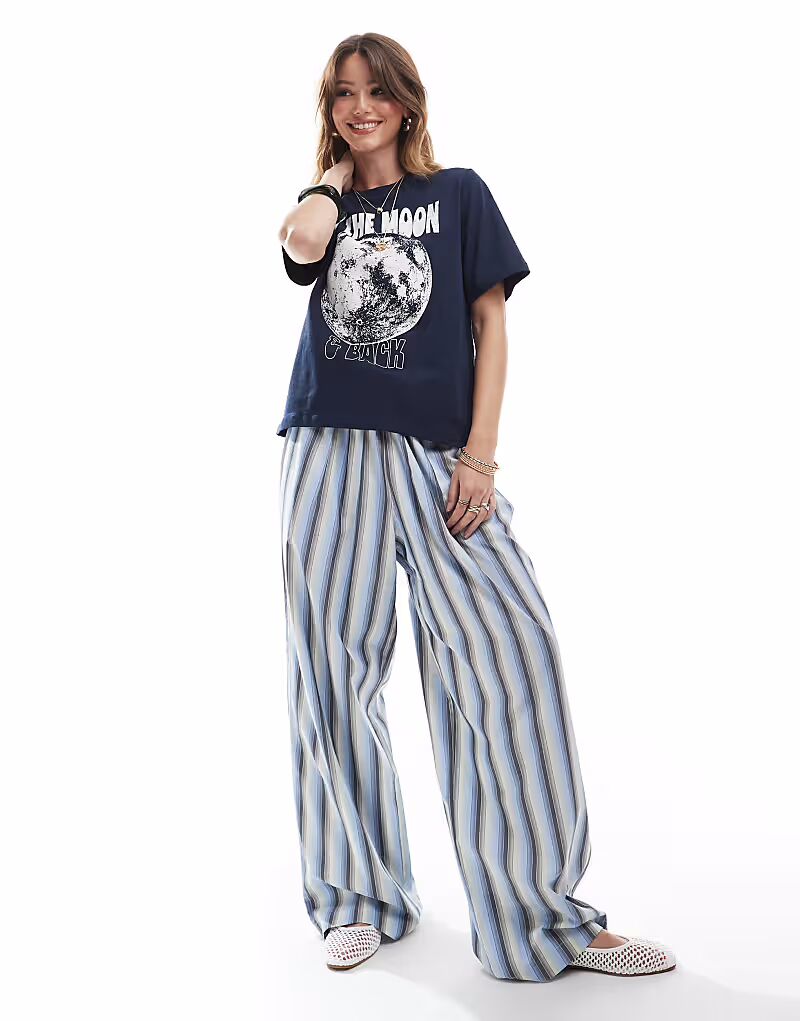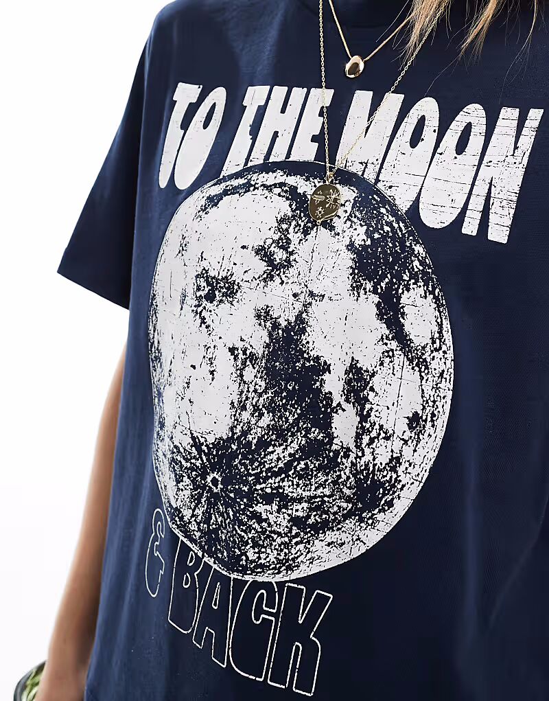 Футболка бойфренда ONLY с рисунком луны в темно-синем цвете