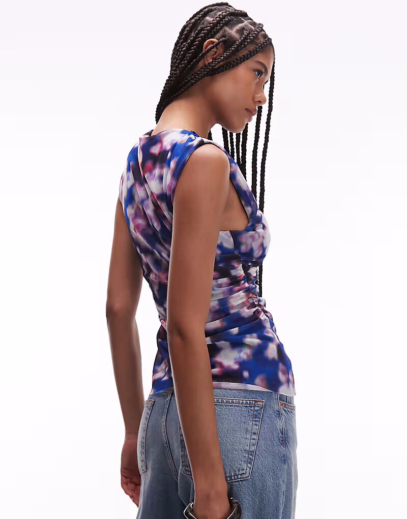 & Other Stories сетчатый топ с драпировкой и размытым цветочным принтом