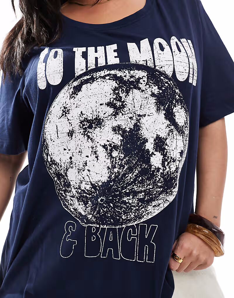 Футболка бойфренда ONLY Curve с рисунком луны в темно-синем цвете