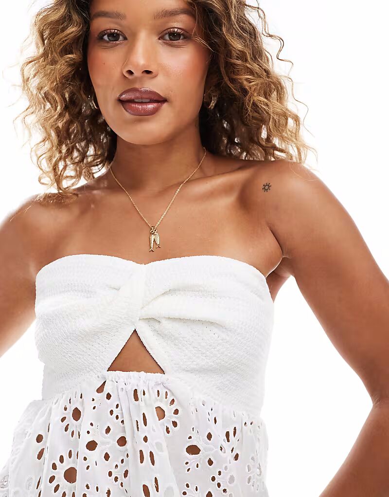 ONLY топ-бандо с вышивкой спереди белого цвета