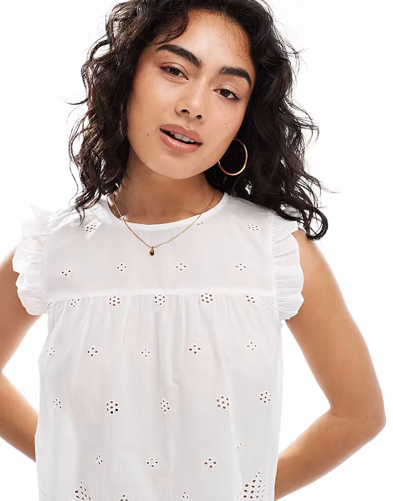 ONLY топ с рукавами-оборками белого цвета