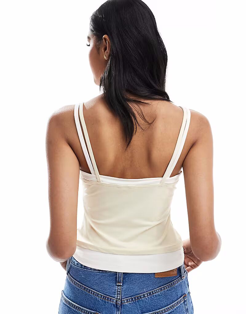 Двухслойный топ на бретельках ASOS DESIGN цвета пахты
