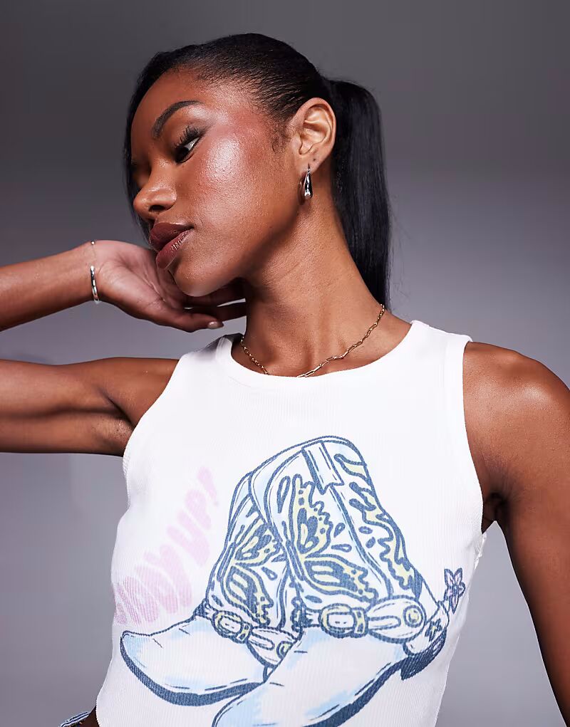 Майка-топ Princess Polly в ковбойском стиле белого цвета