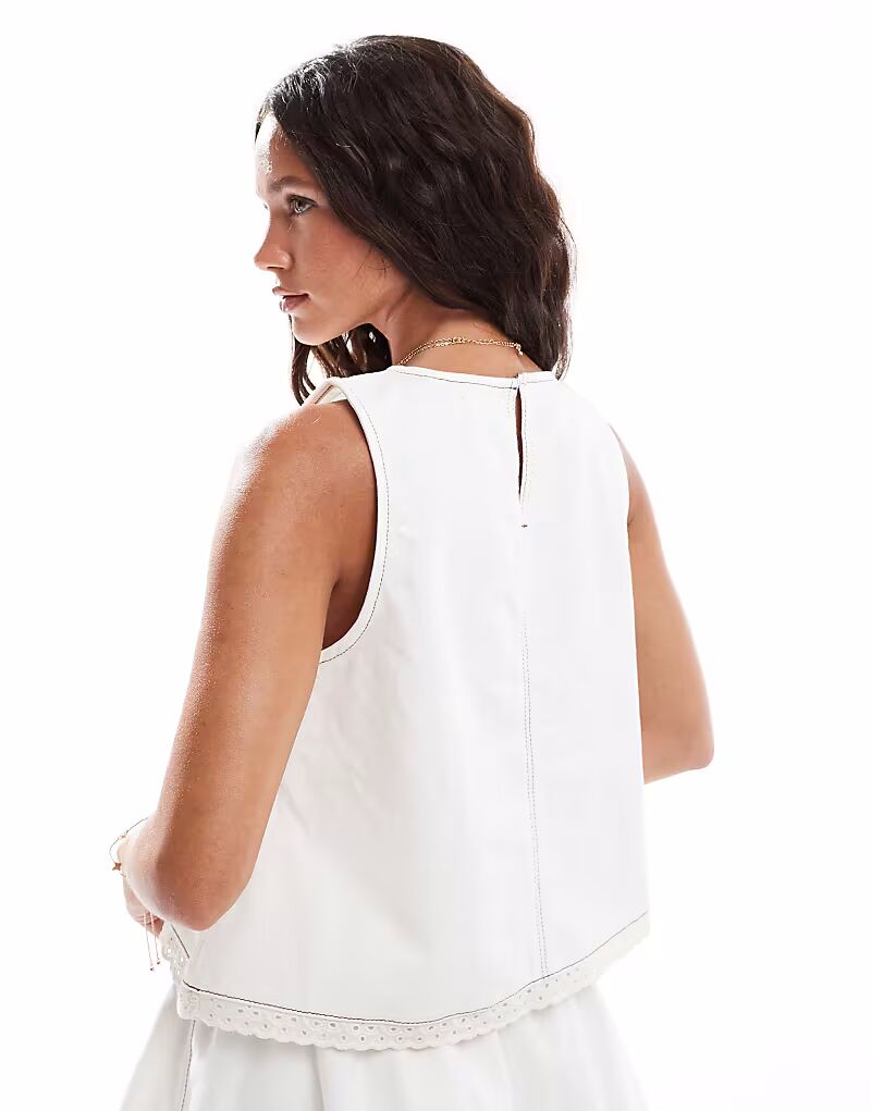 Джинсовый топ ASOS DESIGN с отделкой ришелье цвета экрю
