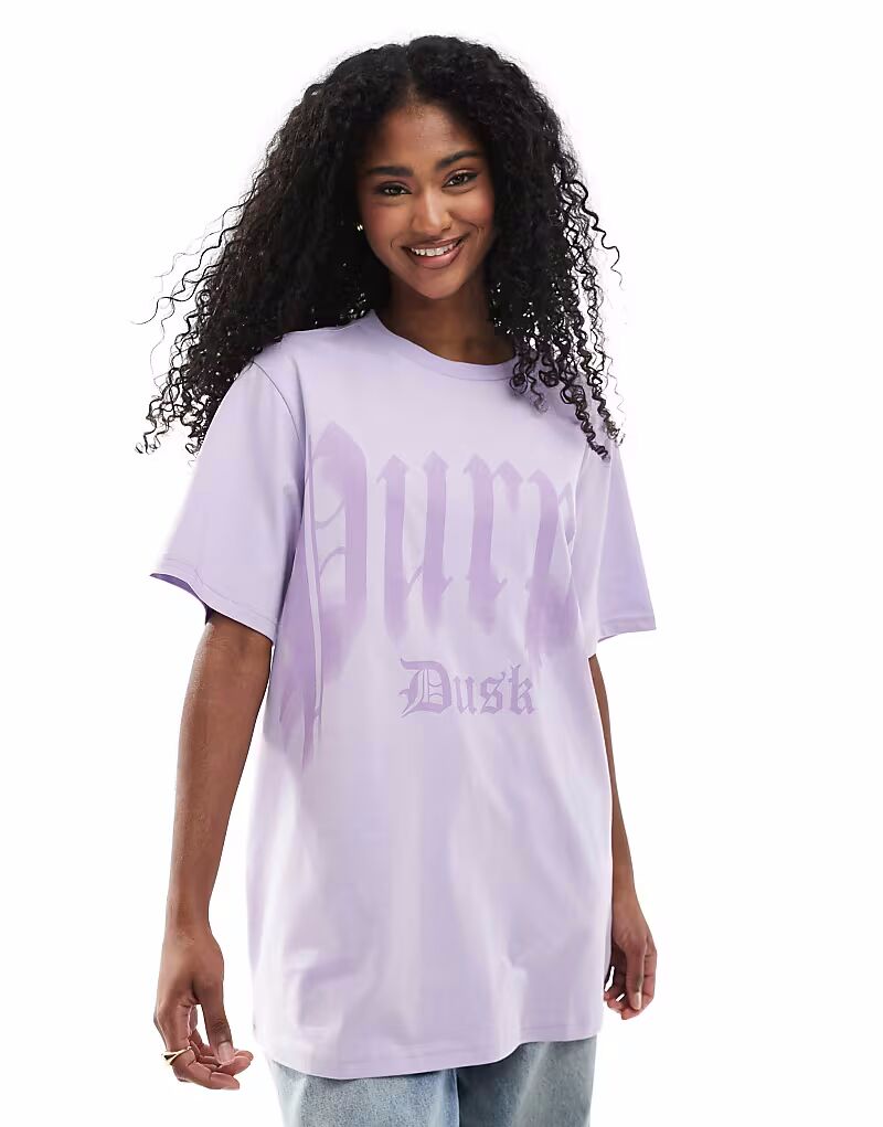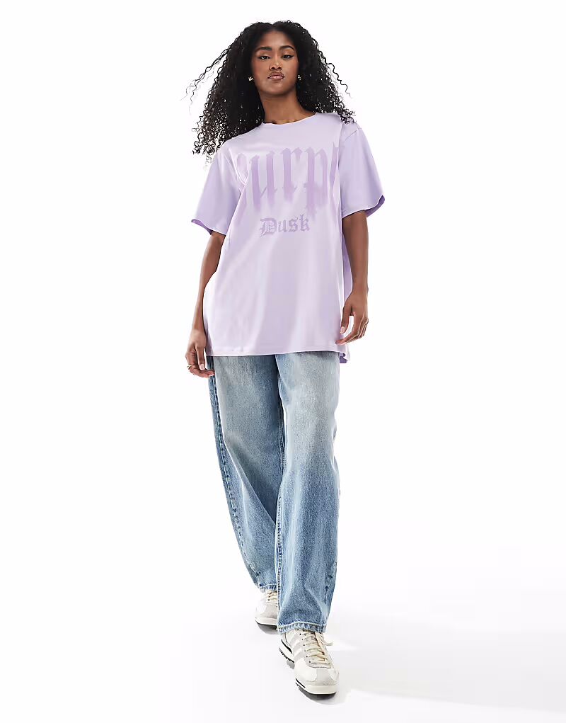 Футболка Monki oversize с принтом спереди в сиреневом цвете