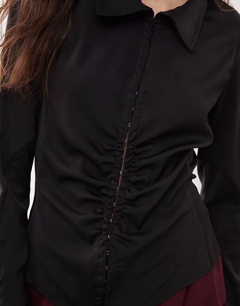 Атласная рубашка Weekday со сборками черного цвета
