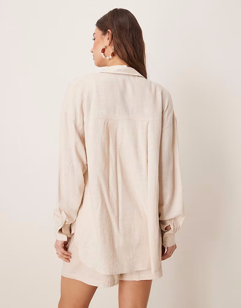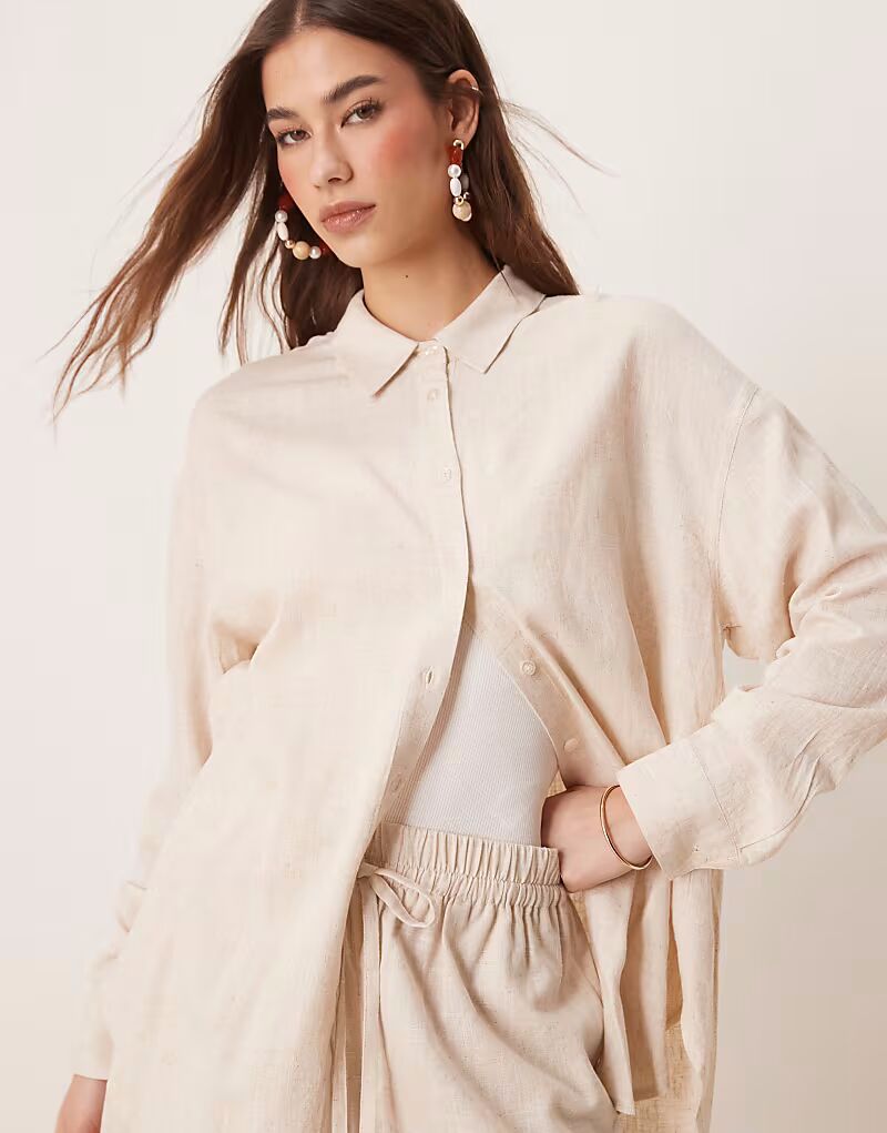 ASOS DESIGN свободная рубашка из льняного материала в цвете Stone
