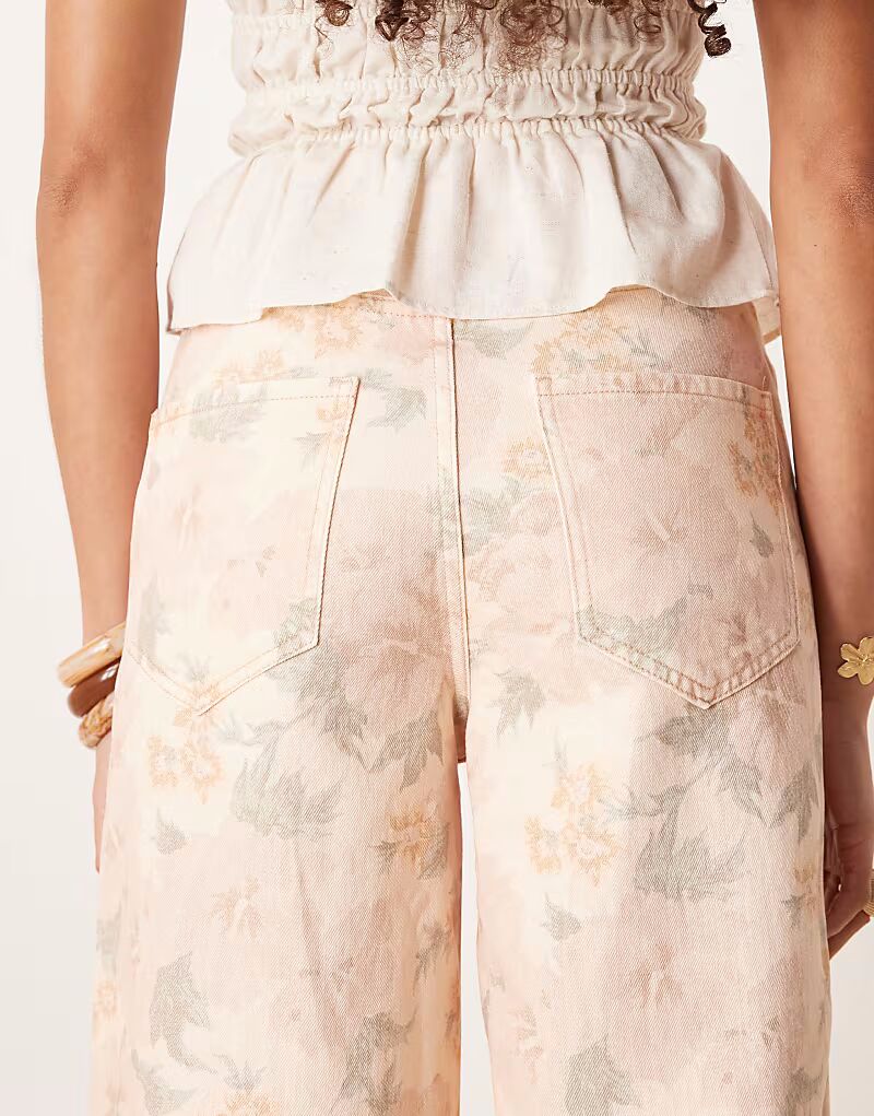 Джинсы Mango Aba с цветочным принтом бледно-розового цвета