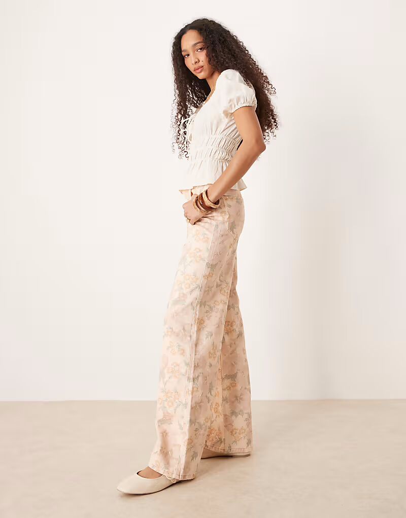 Джинсы Mango Aba с цветочным принтом бледно-розового цвета 6 687₽