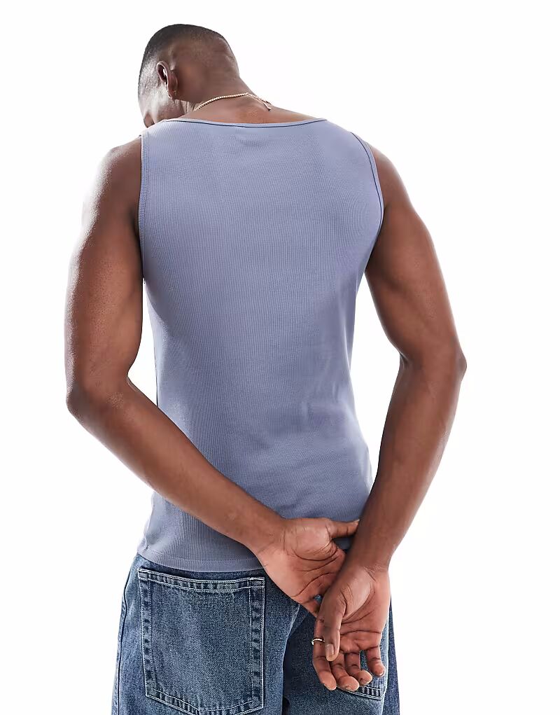 Майка ASOS DESIGN muscle fit в рубчик в угольном цвете