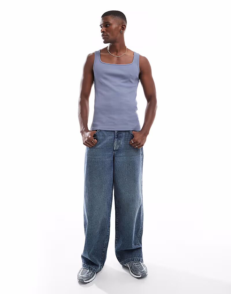 Майка ASOS DESIGN muscle fit в рубчик в угольном цвете 2 306₽