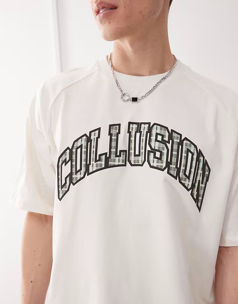 COLLUSION Плотная футболка с клетчатым принтом белого цвета
