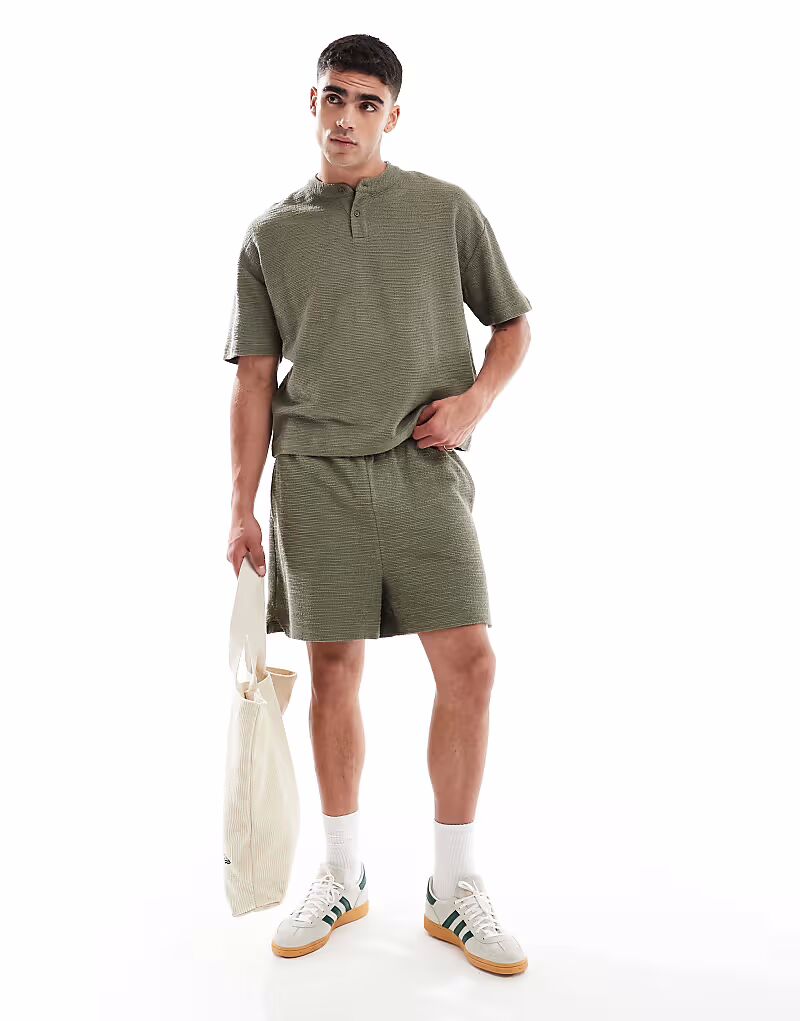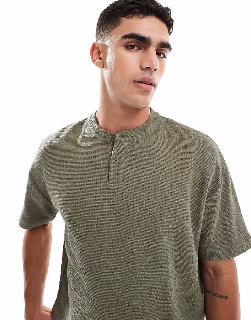 Футболка оверсайз ASOS DESIGN выполнена в актуальном цвете хаки и отличается фактурной отделкой. Модель с круглым вырезом горловины и короткий рукавом. Свободный крой обеспечивает комфорт и свободу движений. Прекрасно сочетается с джинсами, шортами и юбками, позволяя создавать разнообразные образы в повседневном стиле.