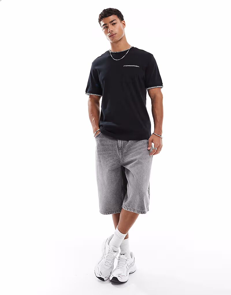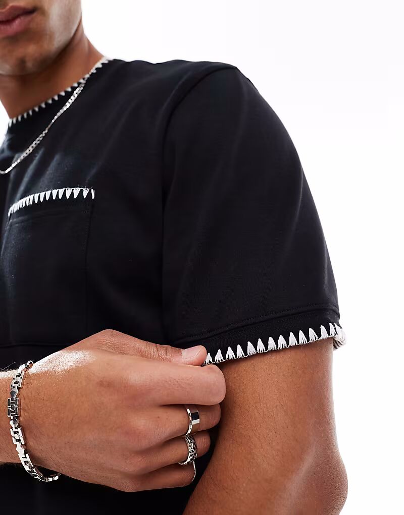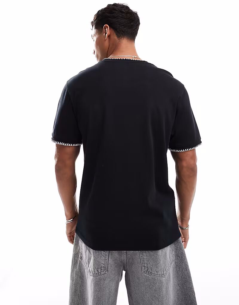Футболка из плотного хлопка плотностью 200 г/м² с белой окантовкой черного цвета Threadbare 3 340₽