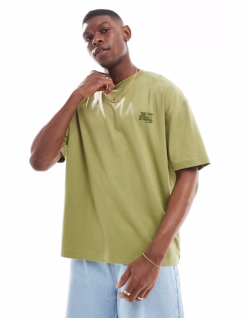 Футболка ASOS DESIGN oversize с городским принтом цвета хаки