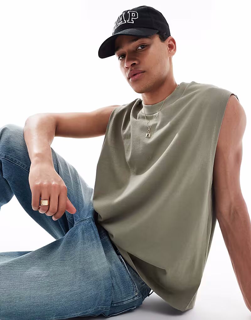 Тяжелая объемная майка ASOS DESIGN цвета хаки