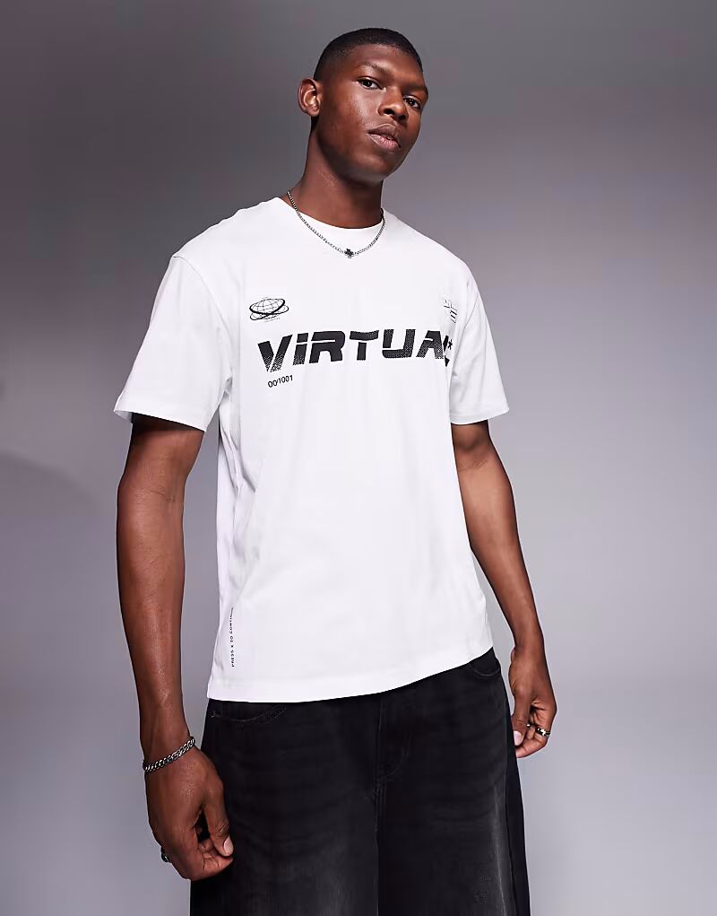 Футболка ADPT оверсайз с принтом спереди белого цвета