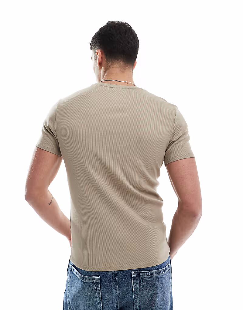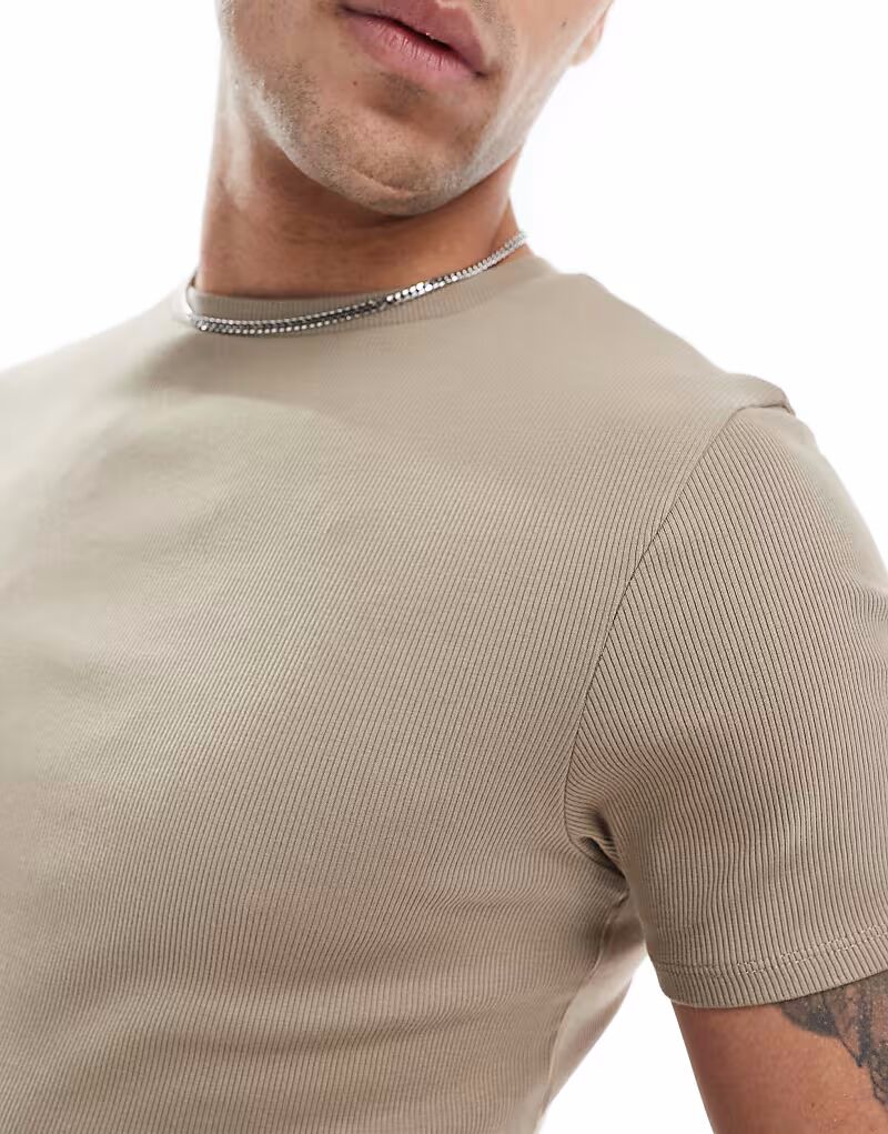 Футболка ASOS DESIGN Essential Muscle Fit Rib в каменном цвете