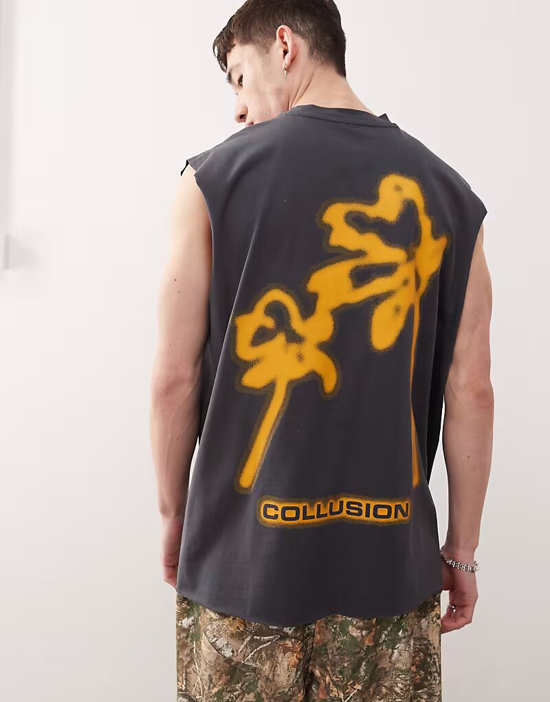 COLLUSION Черный стираный топ-майка с принтом