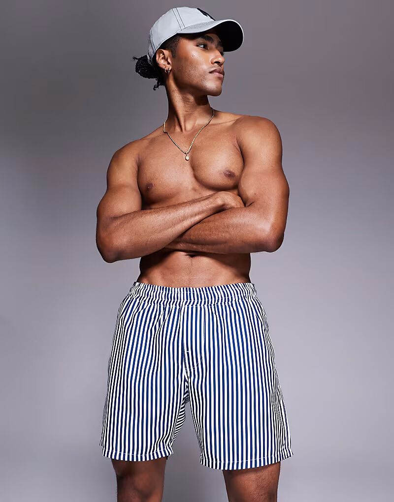 Плавки-шорты ASOS DESIGN средней длины в темно-синюю полоску