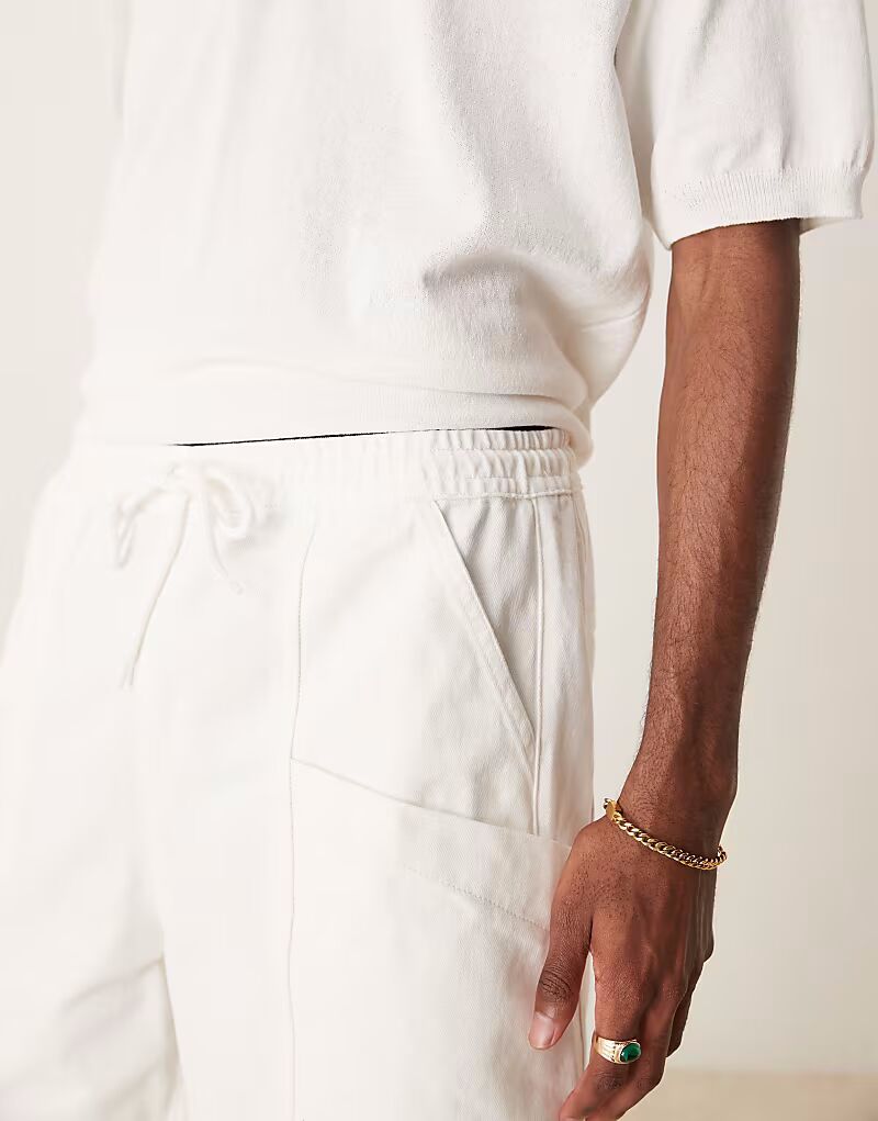 Шорты-карго ASOS DESIGN цвета экрю с завязками на шнурке