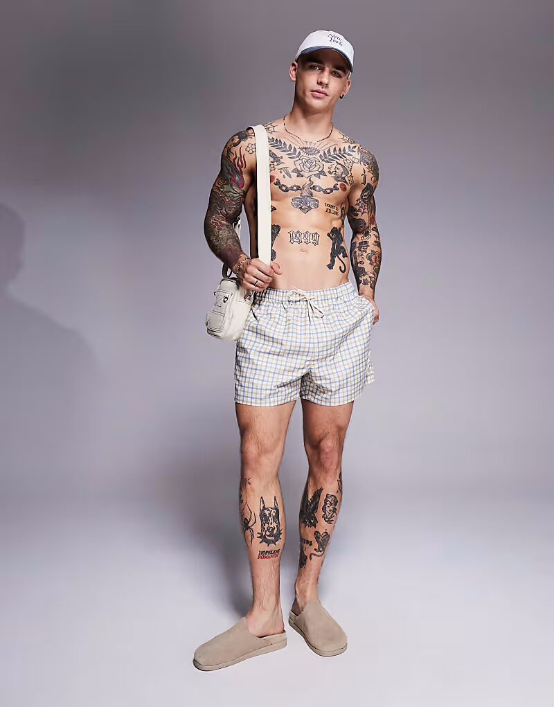 Плавки-шорты ASOS DESIGN средней длины в синюю клетку