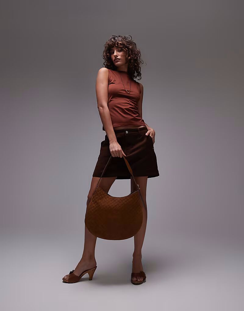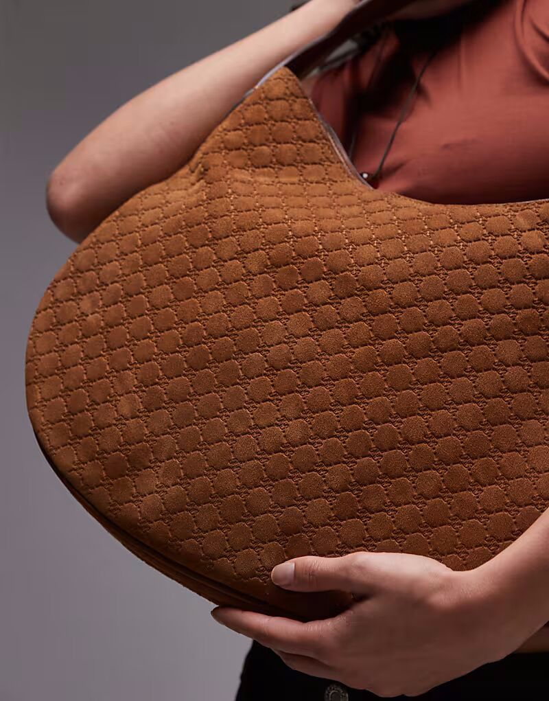 Сумка из коричневой кожи с тисненой монограммой Mango