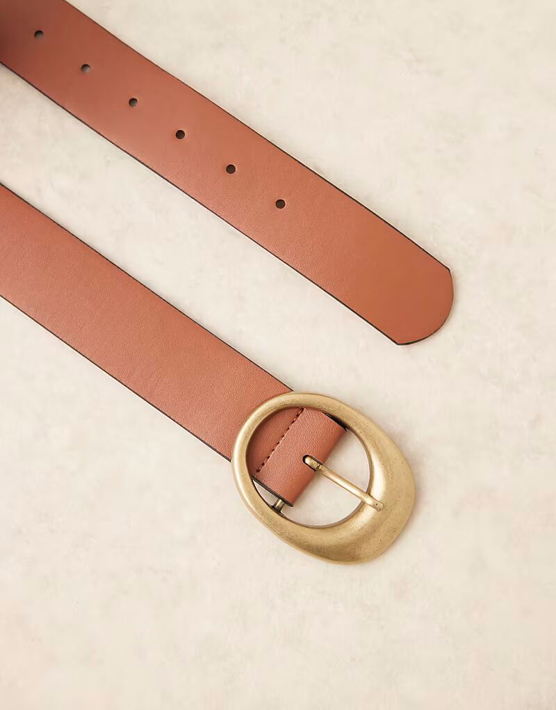 Ремень для джинсов ASOS DESIGN с овальной пряжкой, коричневый 2 474₽