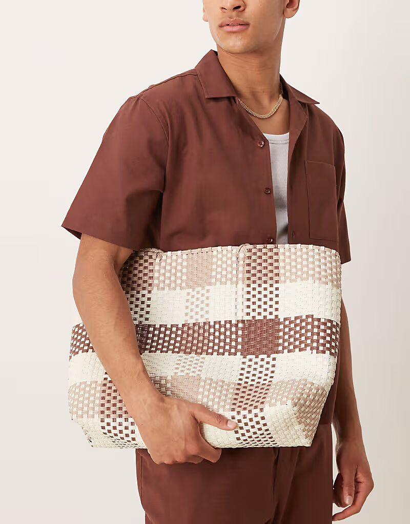 Плетеная клетчатая сумка-шоппер ASOS DESIGN