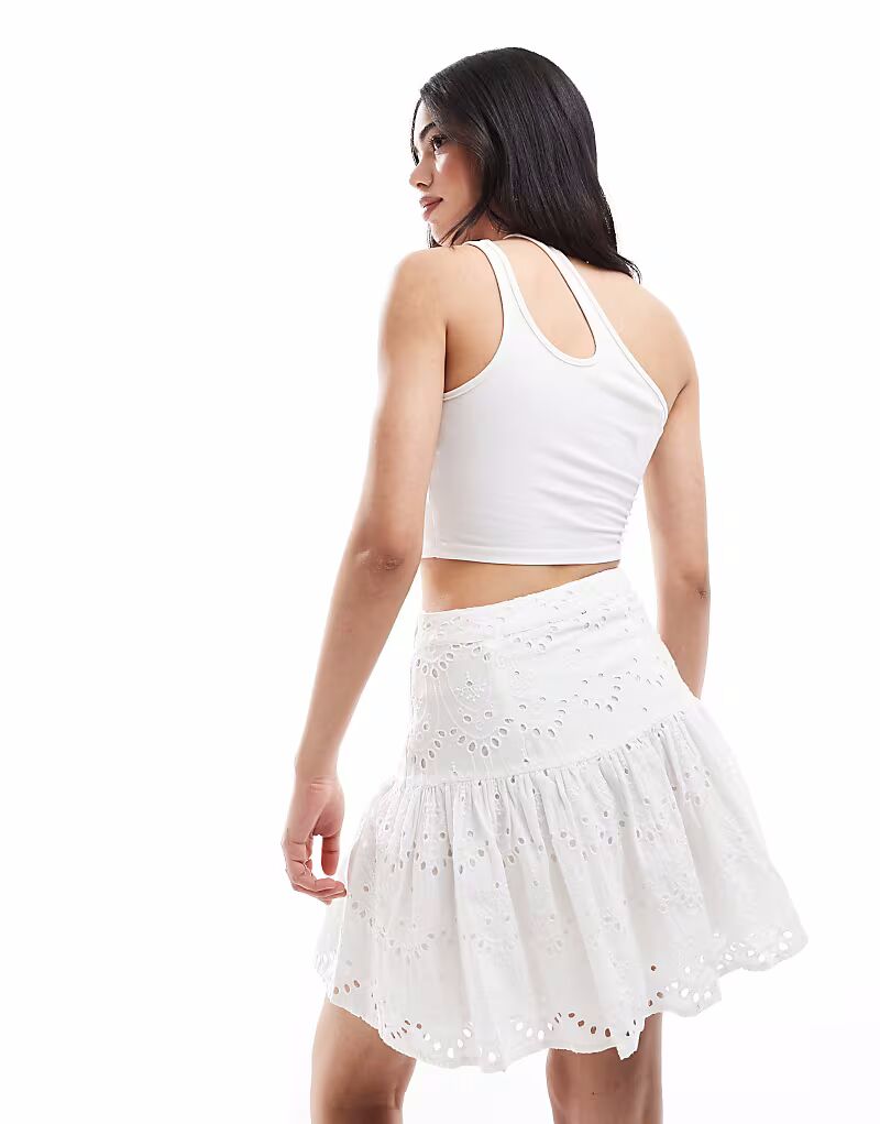 French Connection - мини-юбка Swing с вышивкой ришелье белого цвета