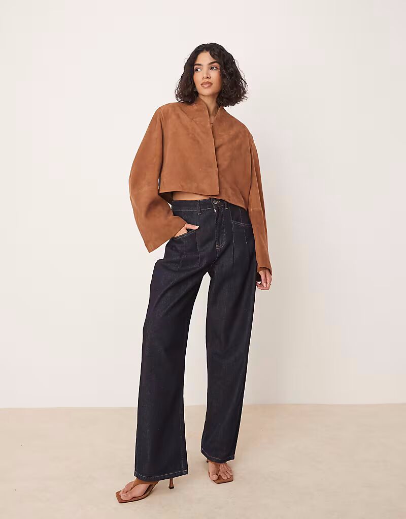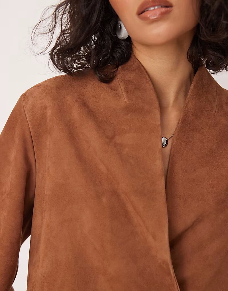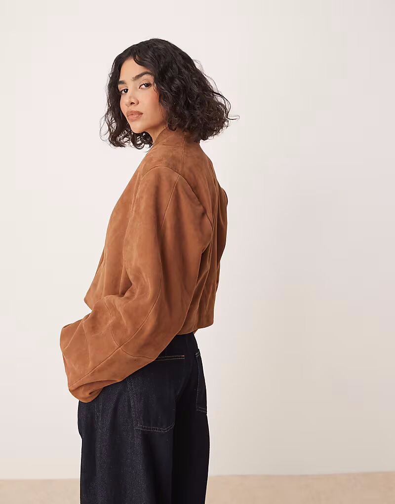 Укороченный замшевый блейзер ASOS DESIGN бежевого цвета