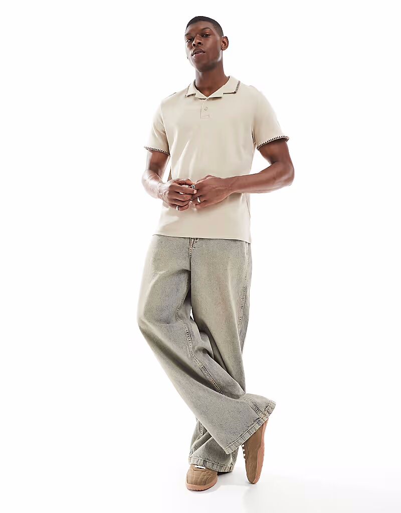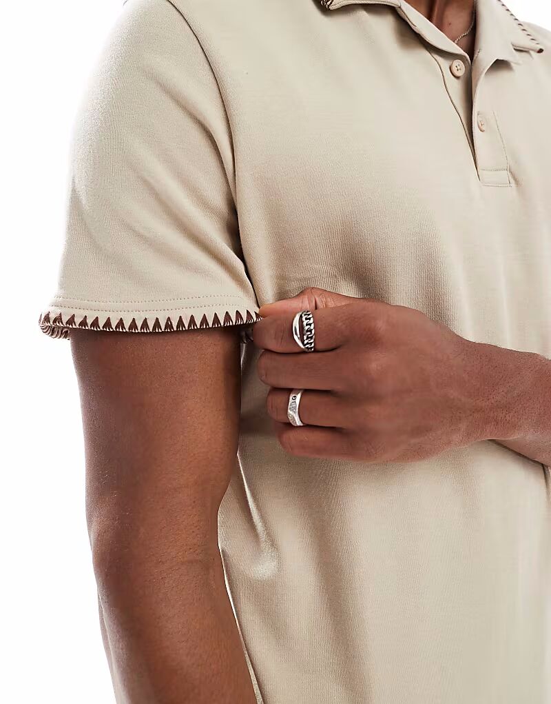 Поло из потертого хлопка с высоким содержанием хлопка в цвете «камень» Threadbare