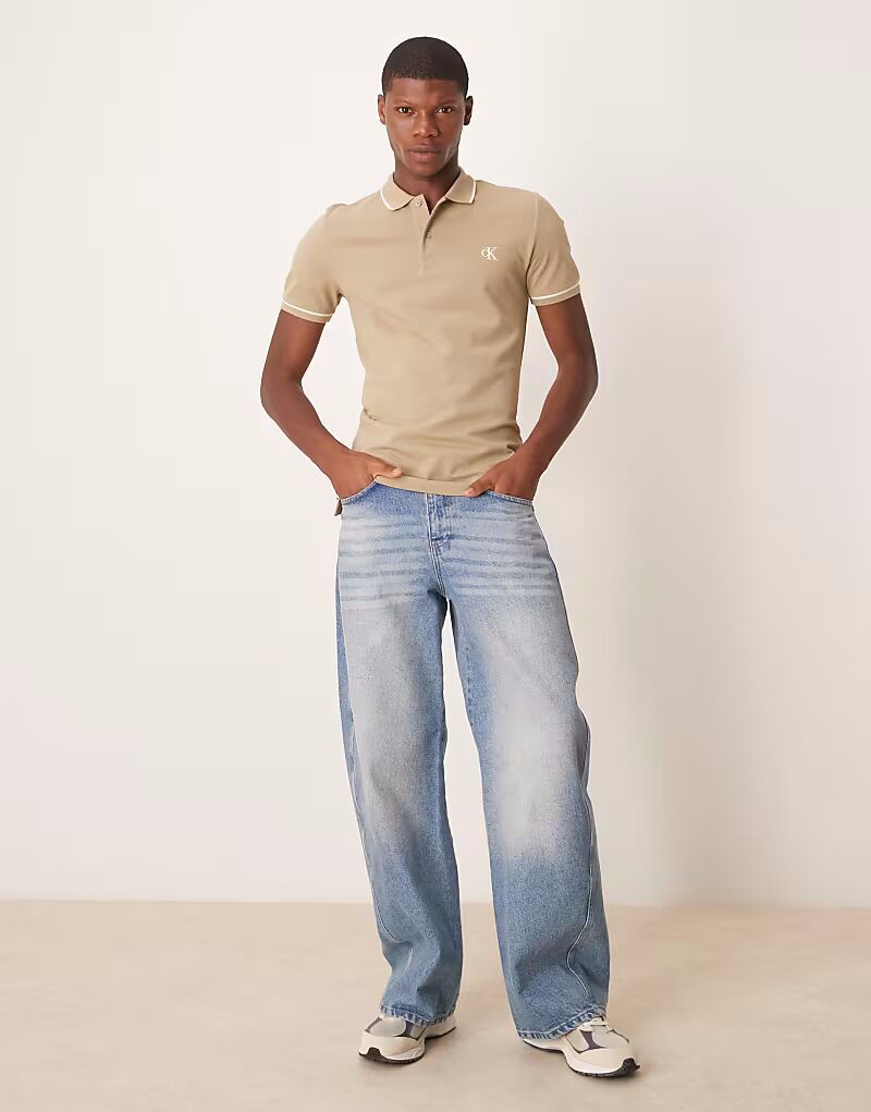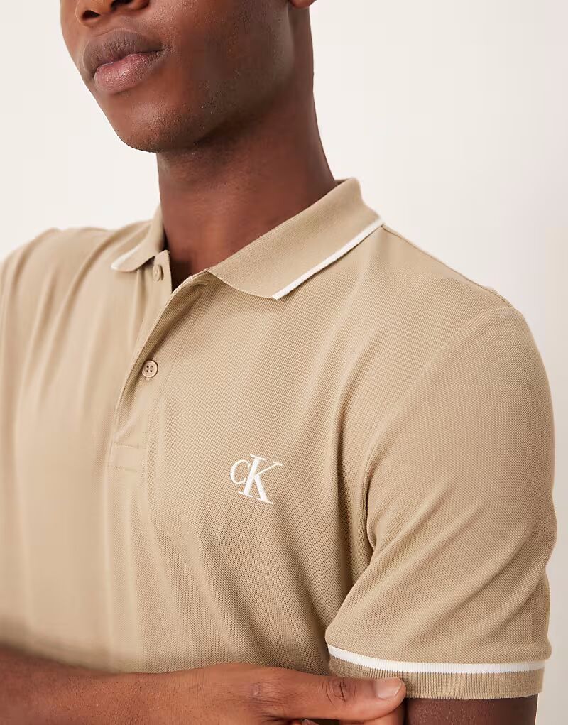 Поло с кантом Calvin Klein Jeans бежевого цвета