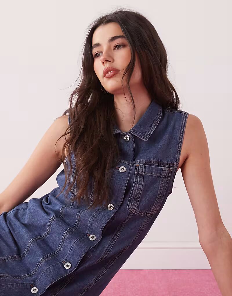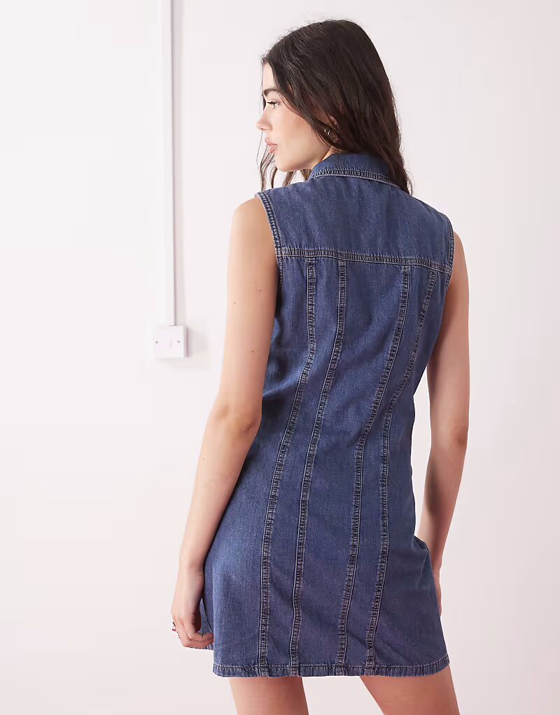 COLLUSION джинсовая приталенная рубашка мини-платье средней степени стертости 3 586₽