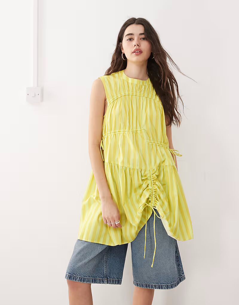 COLLUSION многоканальное мини-платье в желтую полоску