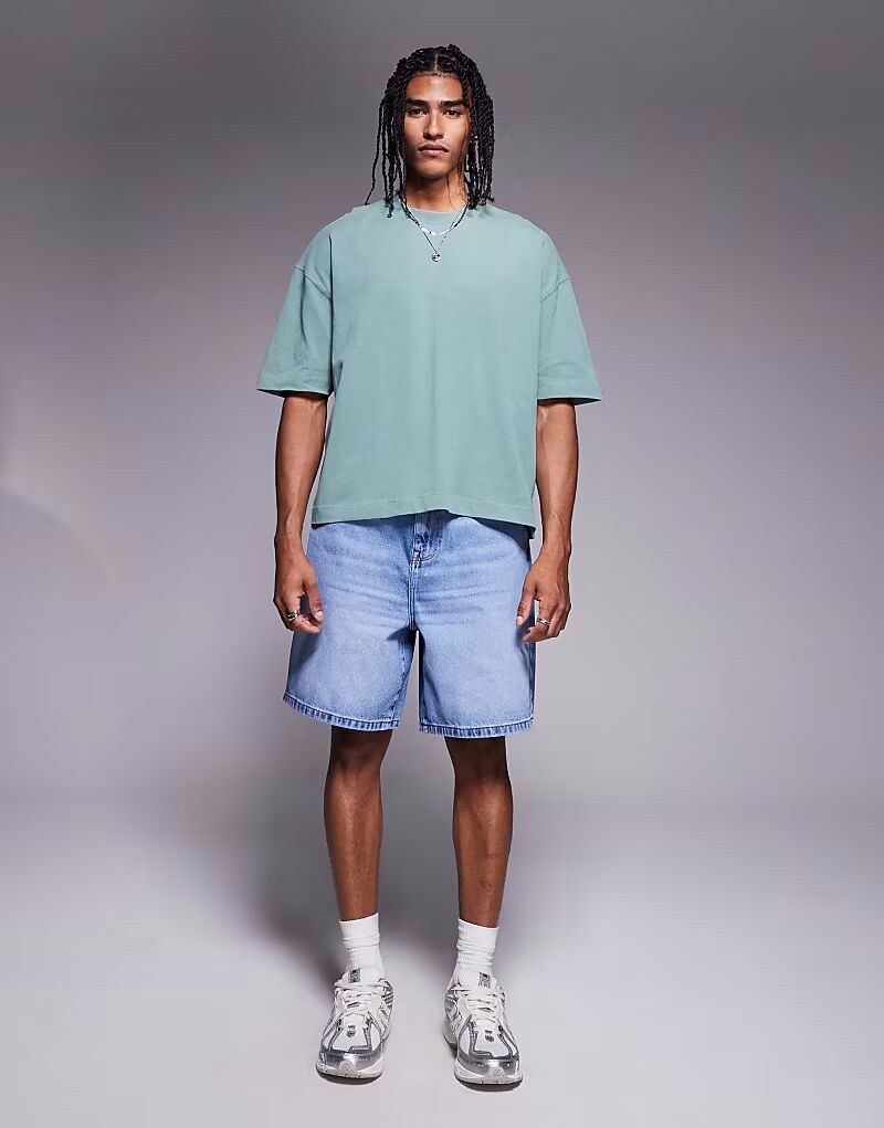 Футболка свободного кроя ASOS DESIGN из плотной ткани зеленого цвета плотностью 220 г/м²