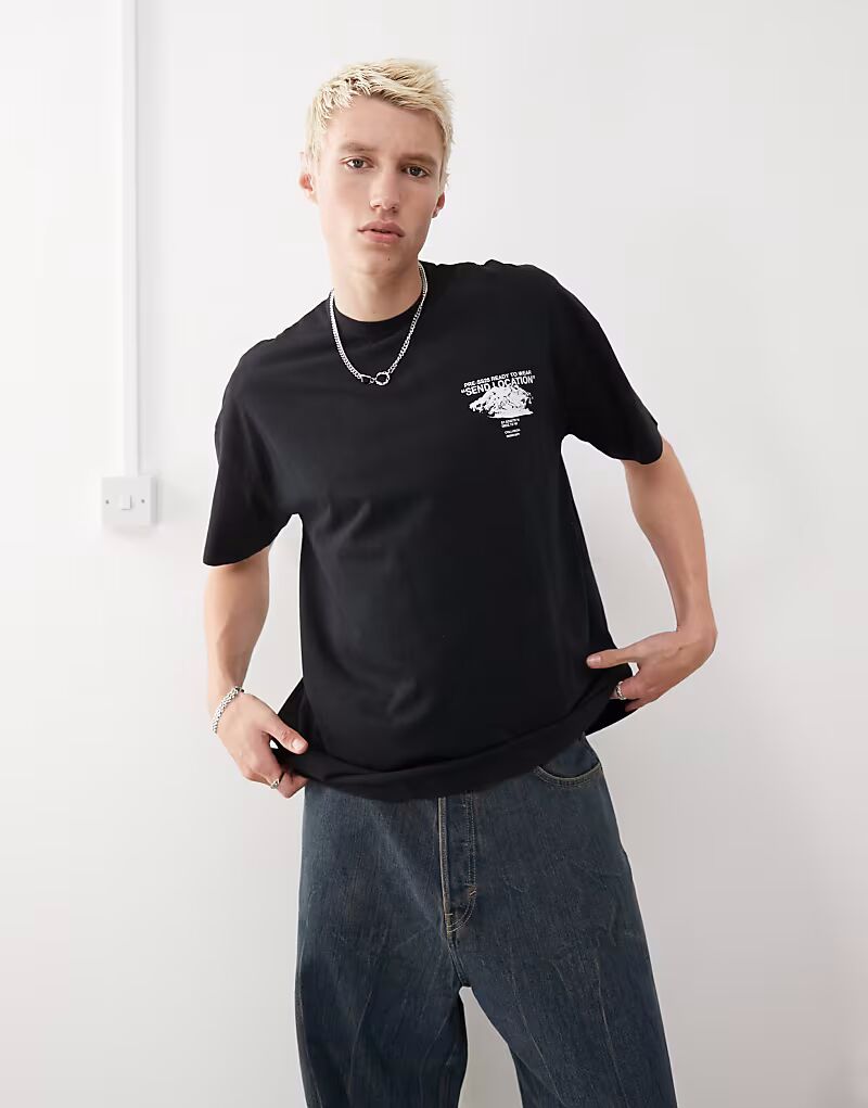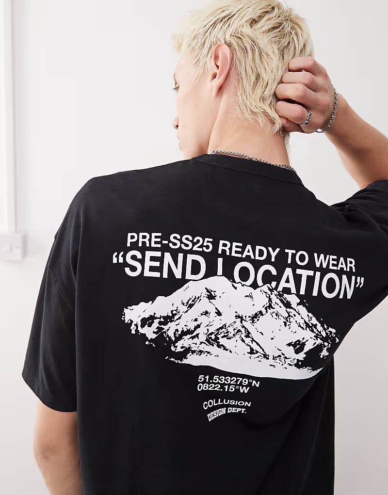 Футболка с принтом местоположения COLLUSION, цвет: черный