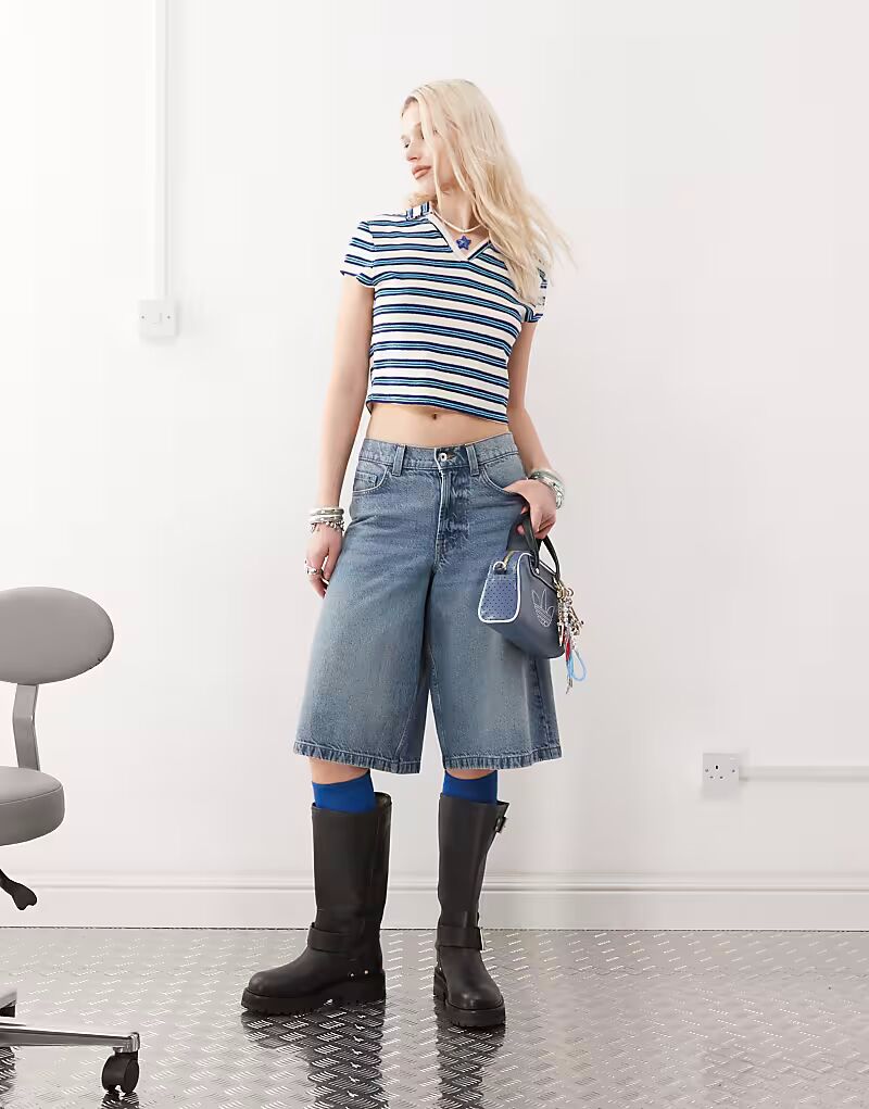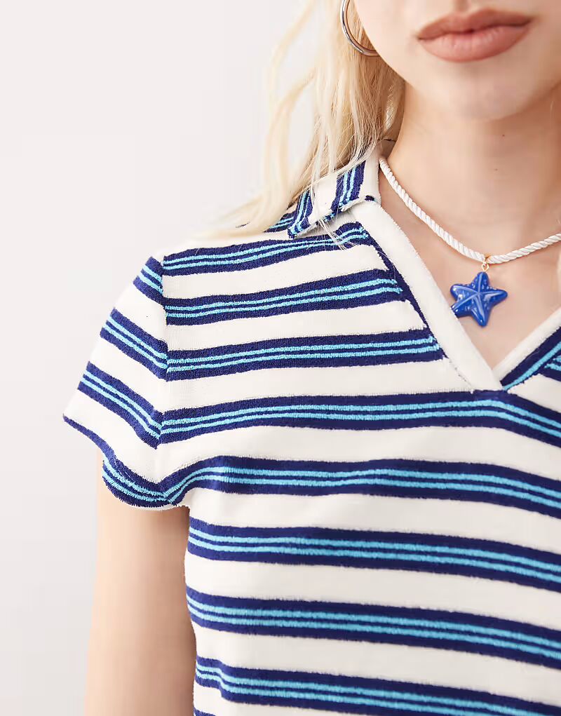COLLUSION синяя полосатая махровая рубашка-поло, коорд