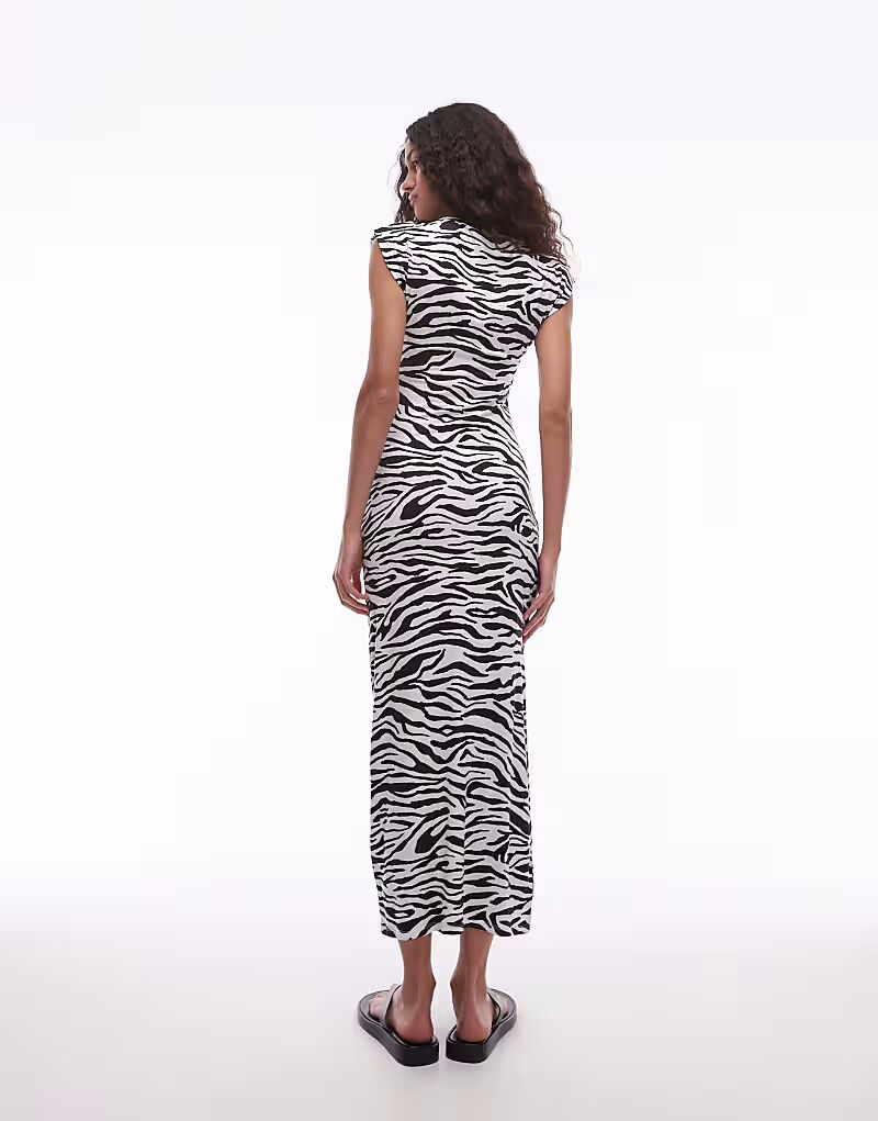 Mango - Белое платье миди с принтом зебры и рукавами-крылышками