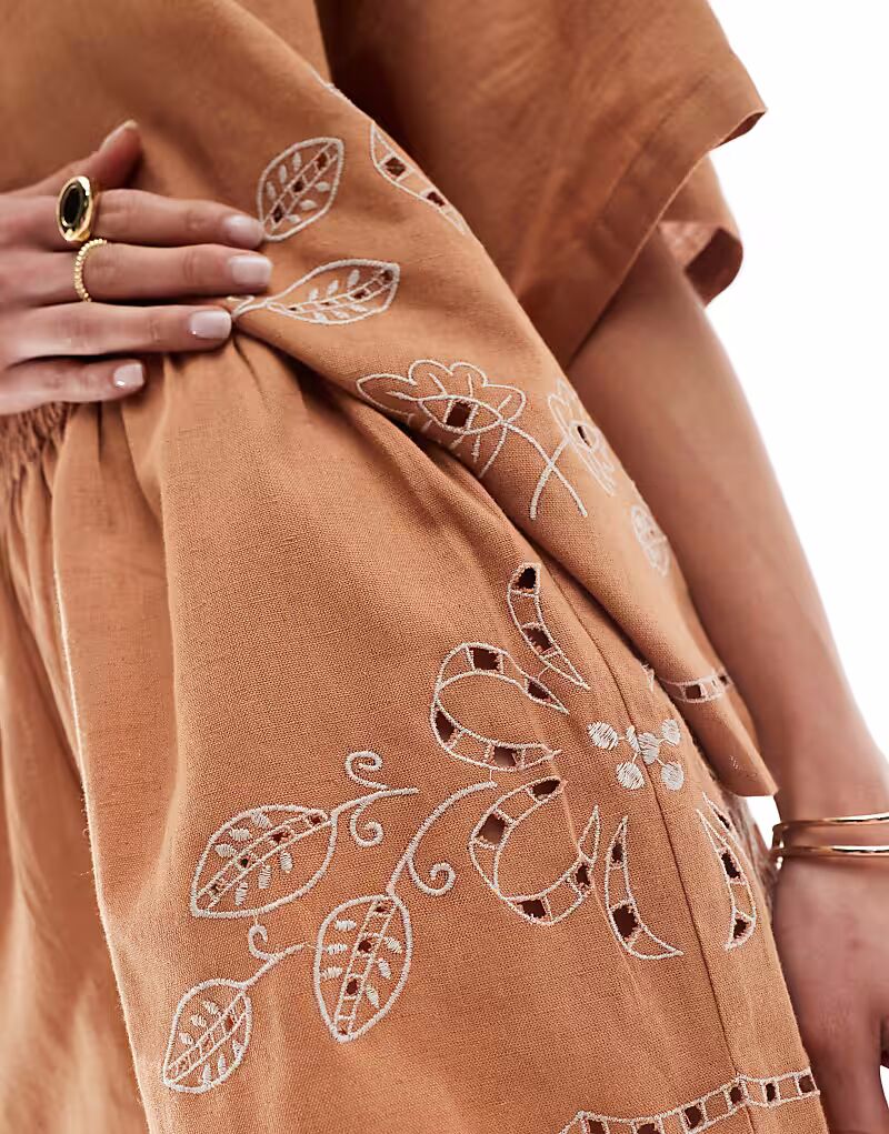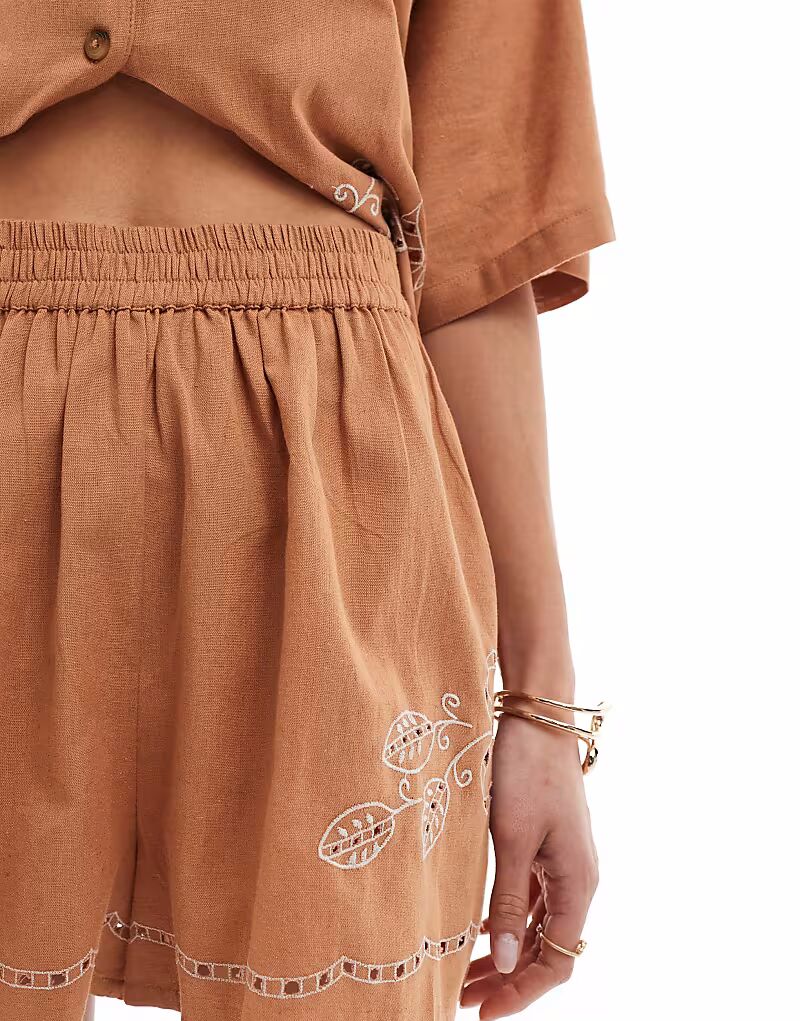 Коричневые шорты ASOS DESIGN с вышивкой ришелье