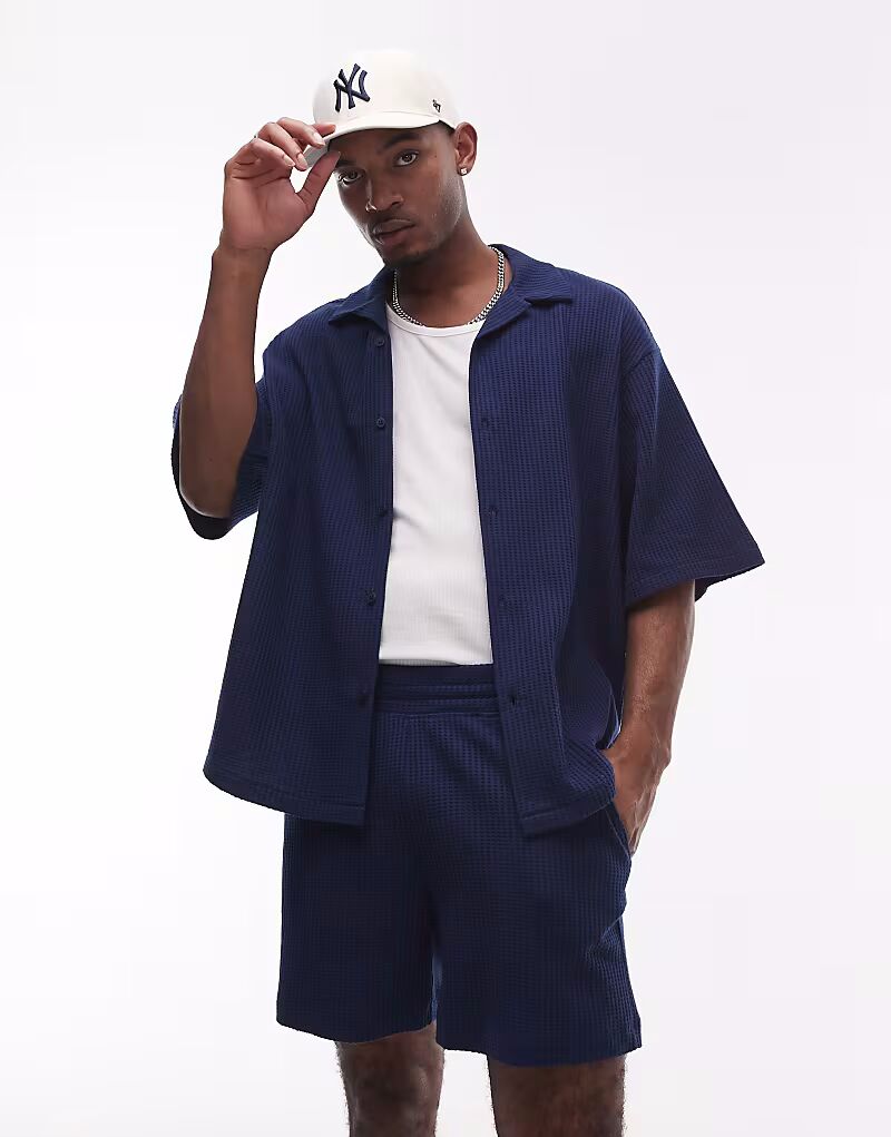 Свободные вафельные шорты Topman темно-синего цвета